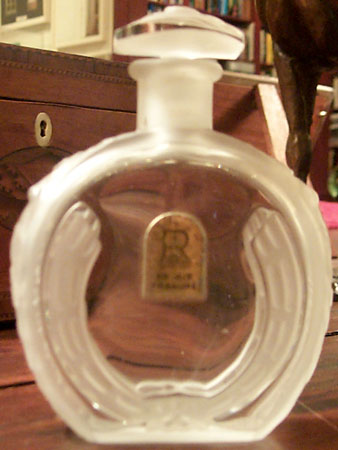 Illustration 2B Clear glass Rigaud bottle after washing with water (Note: Rigaud changed the box and bottle label in later designs but still kept the peach tinted bottle.)