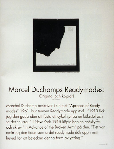 Leif Eriksson,"Marcel Duchamps Readymades: Original och kopior!" Konstmagasinet, no. 14, November, 1991.