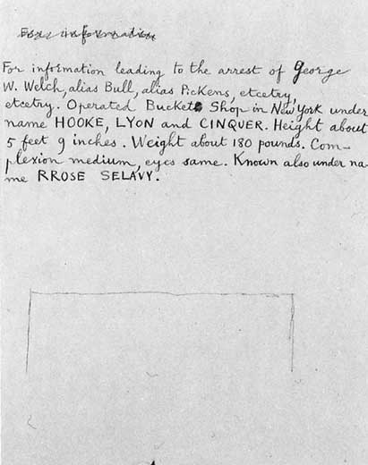 Marcel Duchamp, Photo of the handwritten transcription for Wanted: $2,000 Reward, 1938 © 2000 Succession Marcel Duchamp, ARS, N.Y./ADAGP, Paris