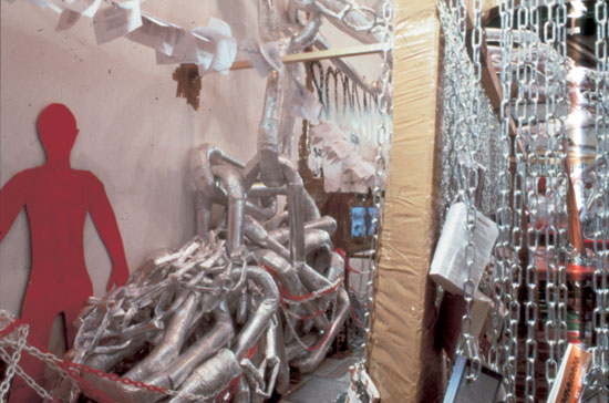 Installation view of Thomas Hirschhorn's "Pole Self," Paris, Centre Pompidou, February 28 – April 30, 2001