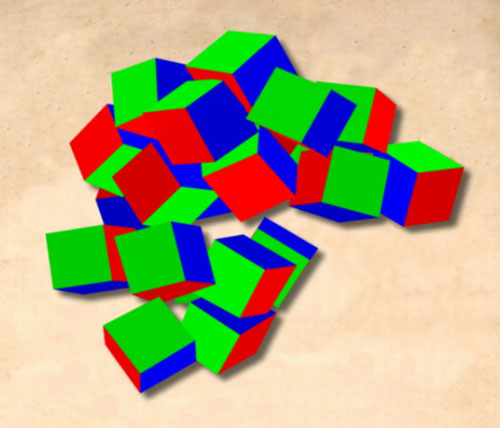An illustration of our 3D model cubes in the places determined by Duchamp chess poster blocks