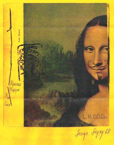 Serge Segay, L.H.O.O.Q., Seite aus dem box-book Segay plus, 1968 Es enthält das gesamte handgeschriebene und gedruckte Material aus den Jahren 1964-1999, das Marcel Duchamp gewidmet ist.